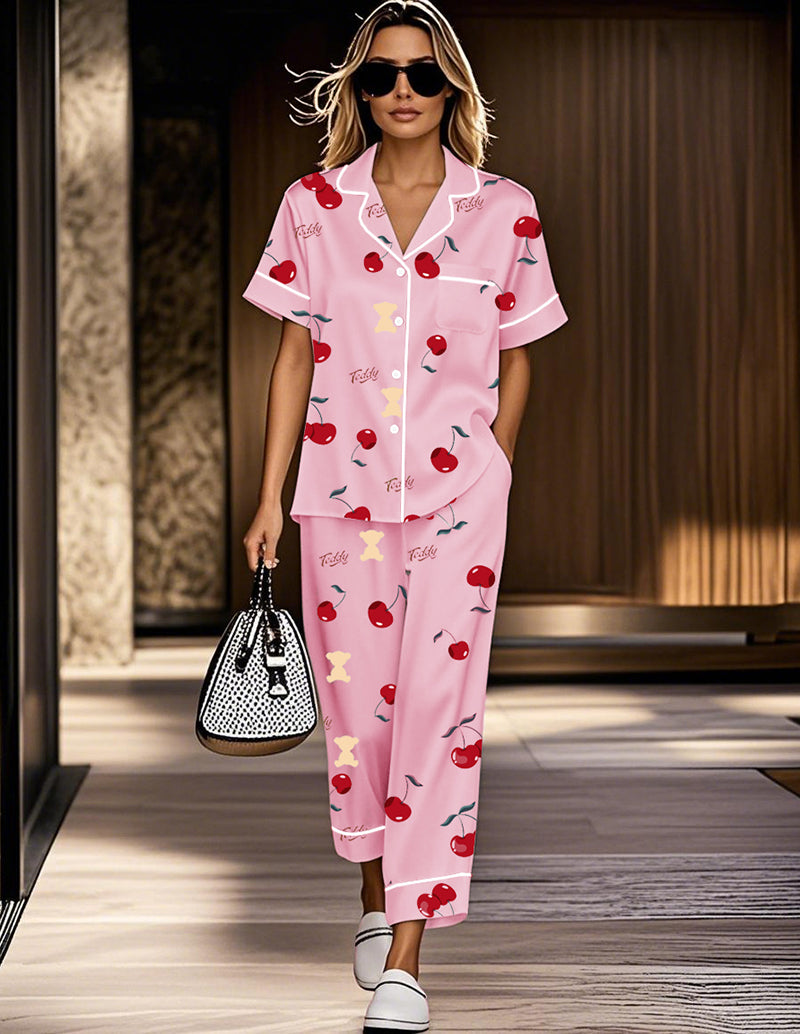 Cozy Cherry Teddy Satin Pajama Set