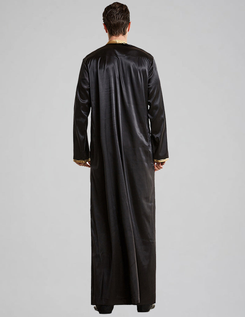 Men's Embroidered Thobe Kandura Long Sleeve Gold Trim Robe