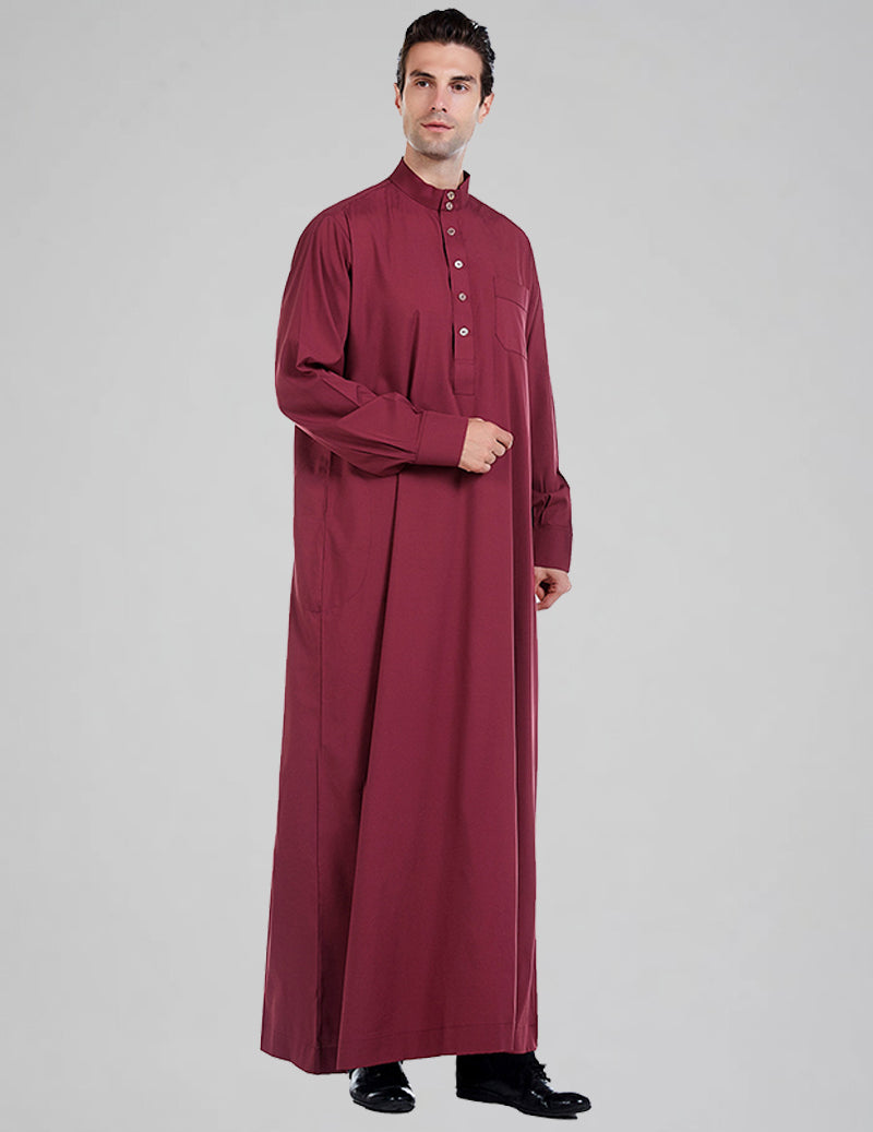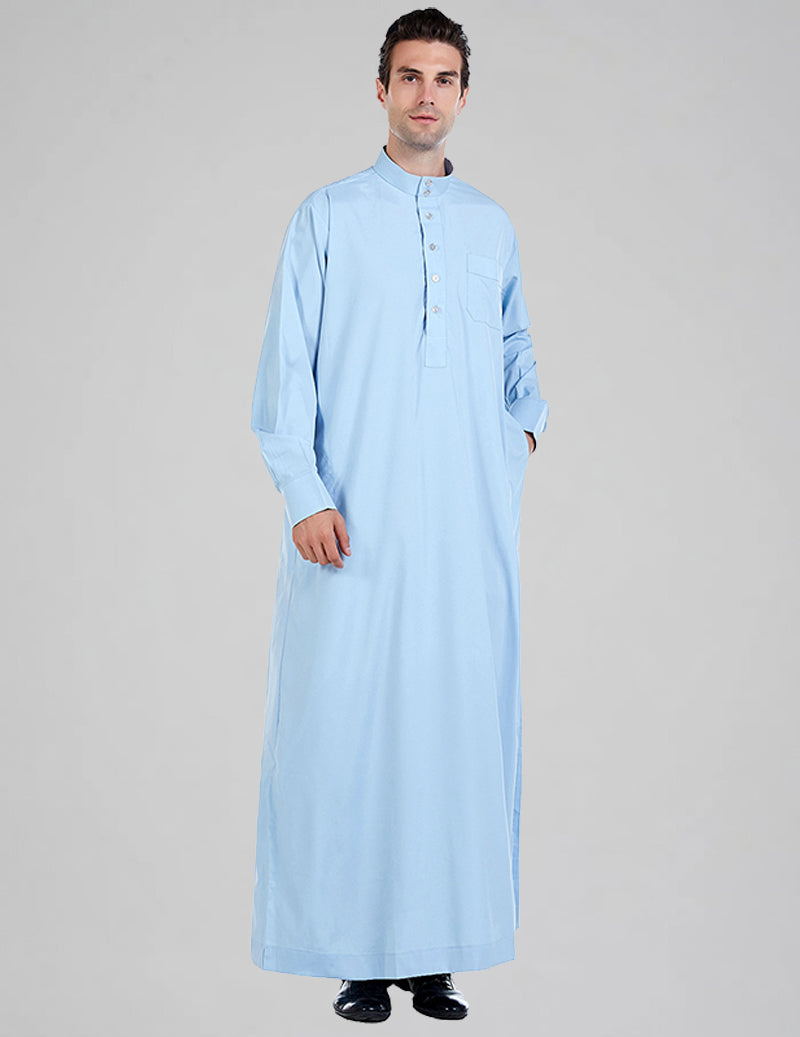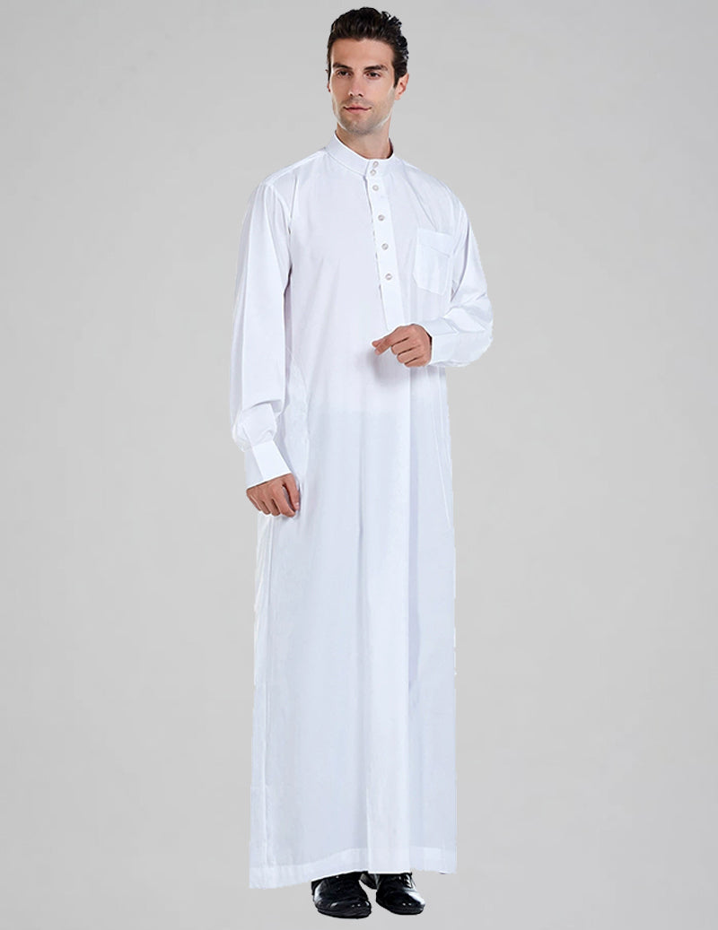 Timeless tradition meets effortless comfort. This premium men's thobe features a sophisticated mandarin collar, full button-front closure, and a relaxed straight-cut silhouette that drapes beautifully. Crafted from soft, lightweight, breathable fabric, it offers all-day ease of movement while maintaining classic elegance.