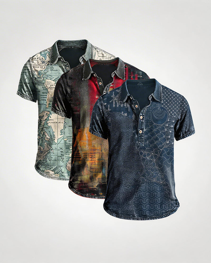 - 1 × Men's Vintage Printed Polo Shirt