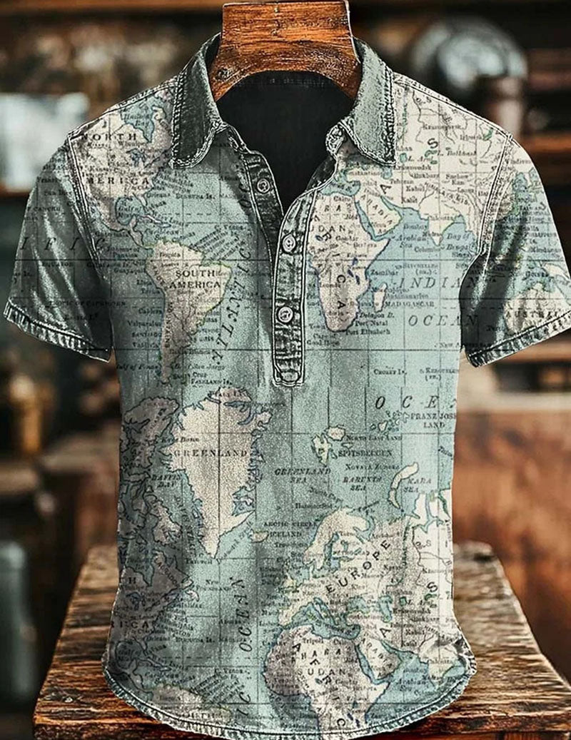Men's Vintage Printed Polo Shirt – Short Sleeve Retro Casual Shirt