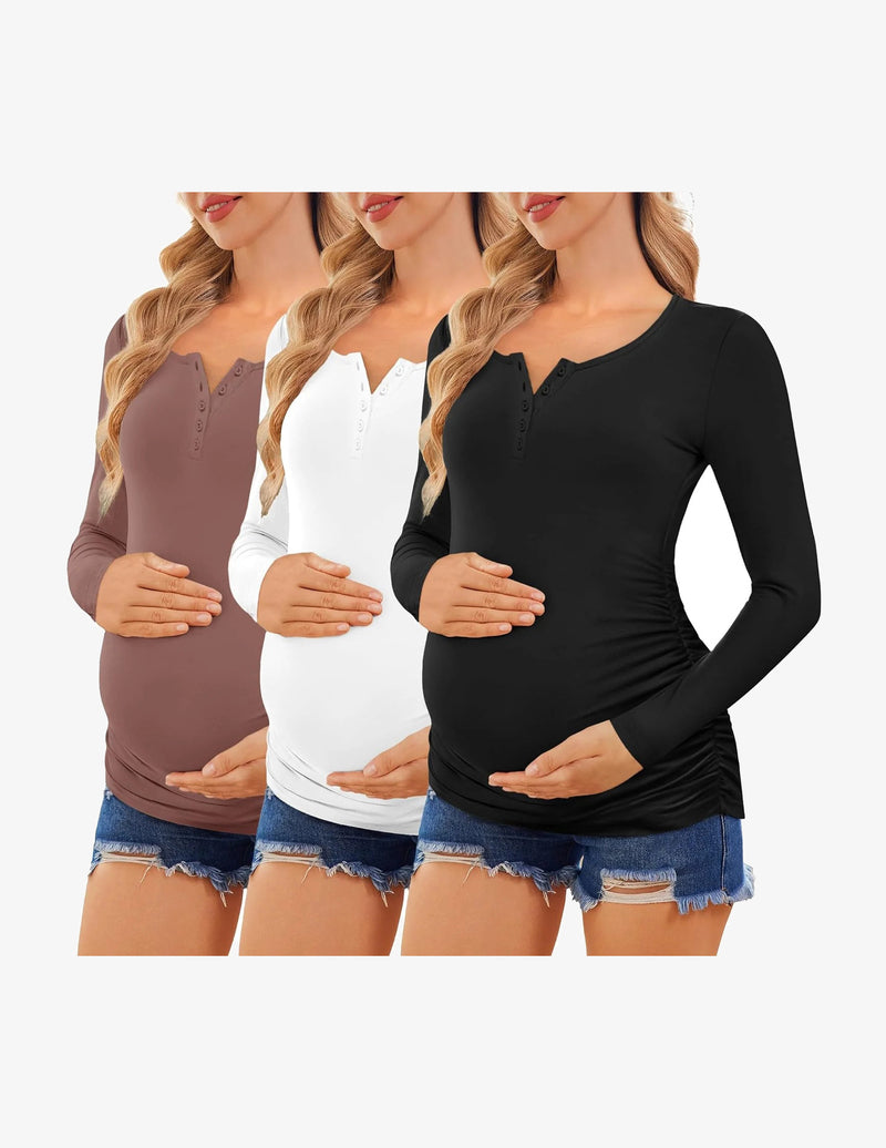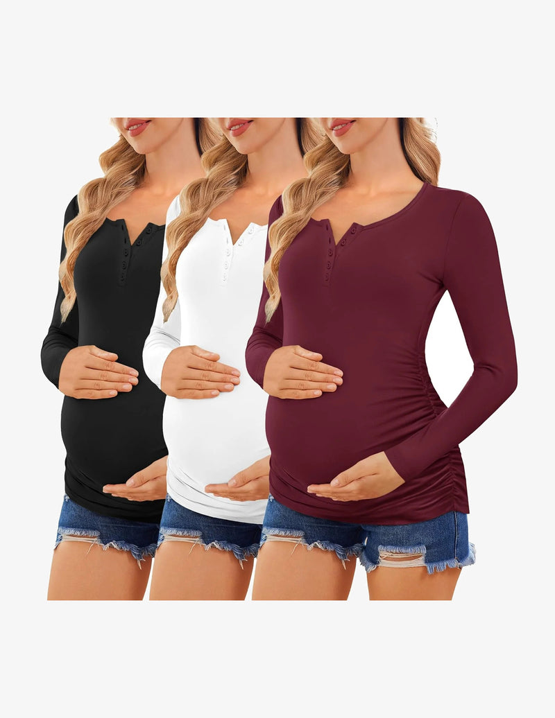 3 Pack Maternity Shirts Long Sleeve Pregnancy Tops