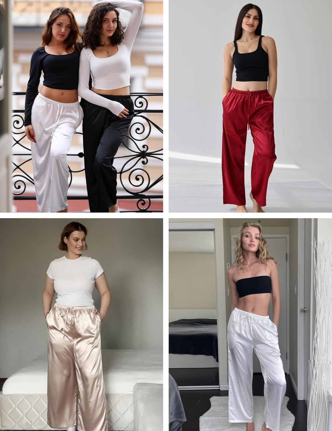2 Pack Silky Pajama Pants: The set includes 2 pairs of silk pj pants in different colors. These simple and classic colored pants are perfect for daily wear and can be easily coordinated with various outfits