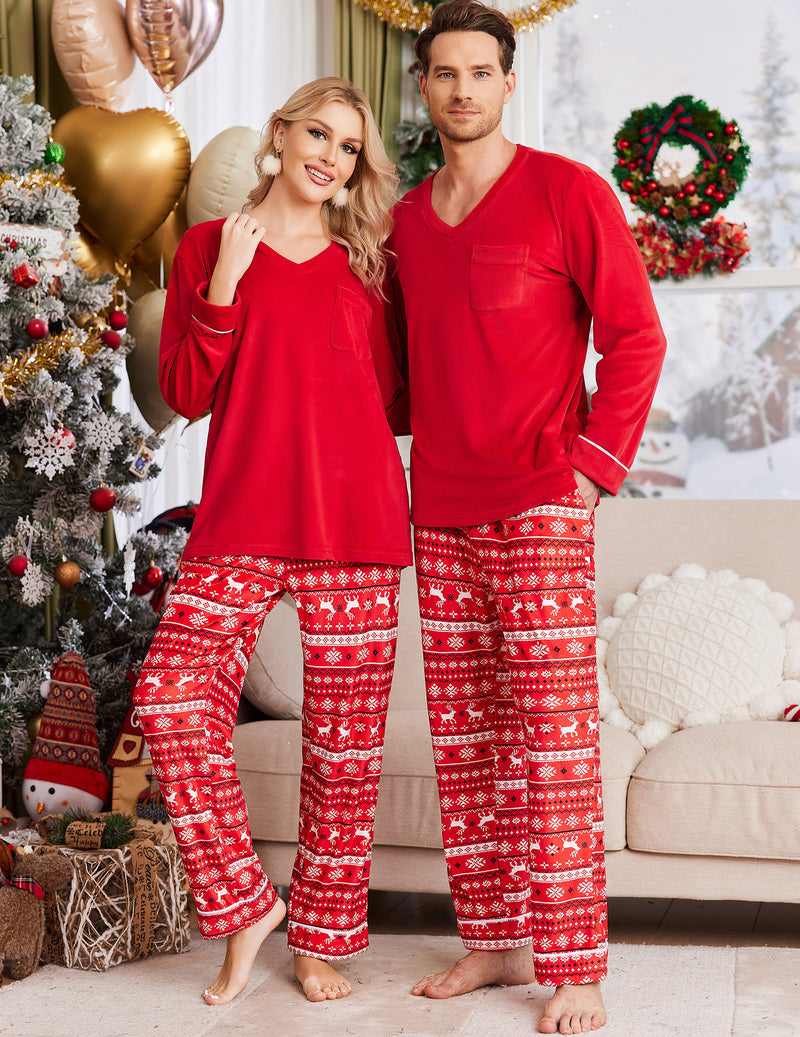 • Sleepwear Features:Pajamas matching set features classic long sleepwear style.His and hers pajamas sets couples with v neck,one chest pocket,long sleeve pajamas shirts.