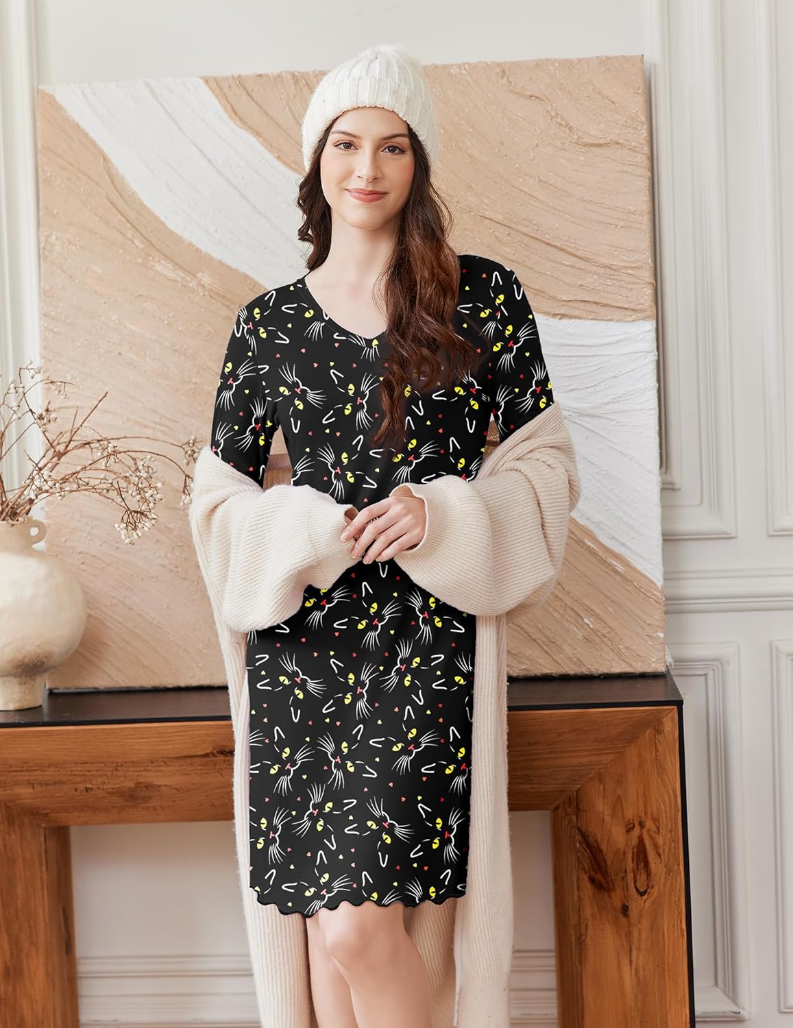 95% Cottton Material: This pretty cotton lightweight nightgown is naturally soft and smooth, breathable, feels light and airy against the skin, offers an effortless blend of comfort and laid-back style, making it perfectl for all year-round wear