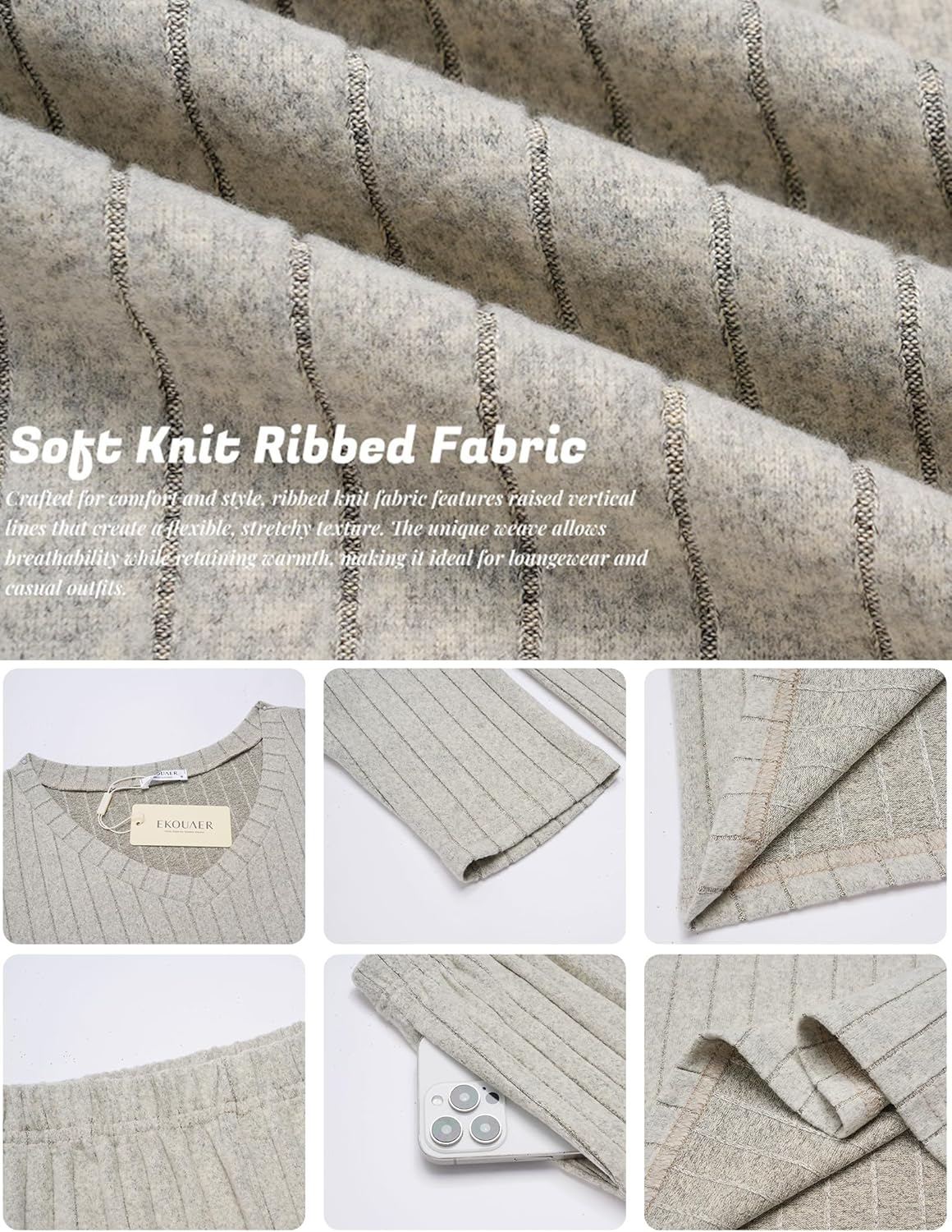 FABRIC: 95% Polyester 5%Spandex.These womens pajama sets are made of soft and stretchy fleece fabric.Knit ribbed texture makes the loungewear trendy.