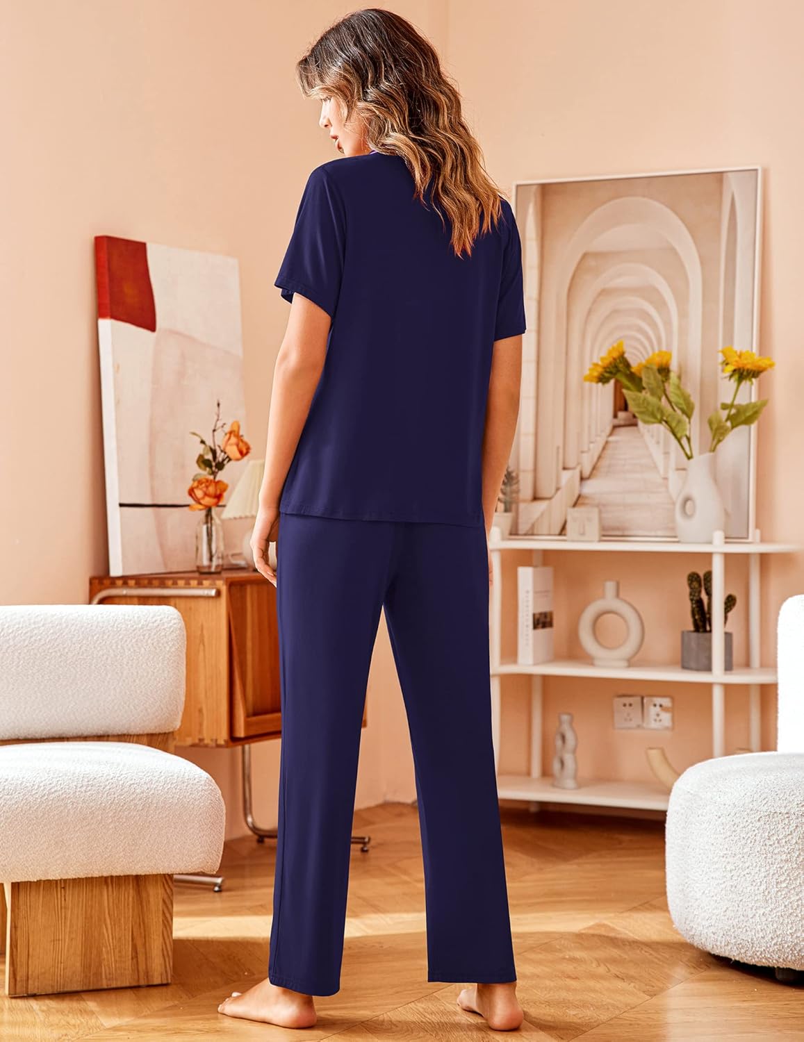 • Soft and Comfy Pajamas Set: The pajamas is made of soft cozy cotton(95% Viscose+5% Spandex, printed pjs fabric: 95%Polyester 5% Spandex), the fabric is so soft to wear, it makes you comfortable in the lounge and sleeping time. The pajamas material supports machine wash and hand wash.