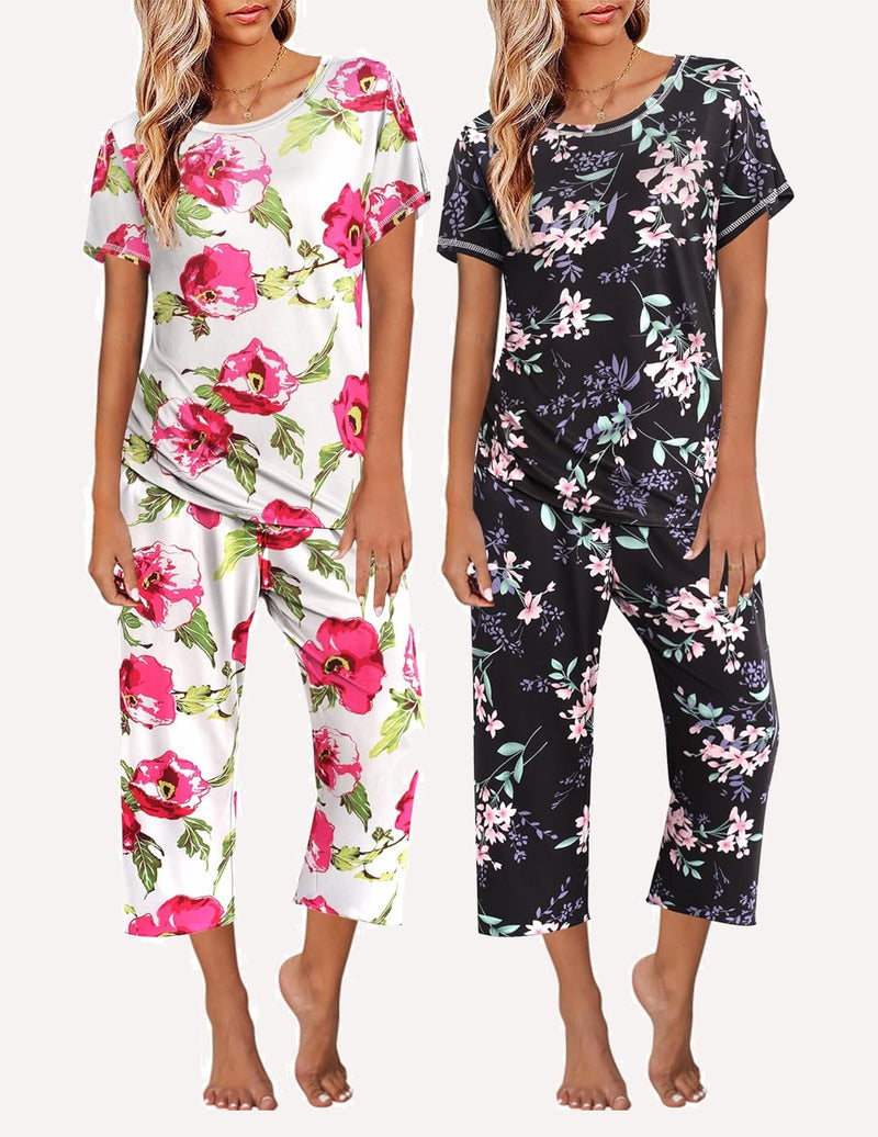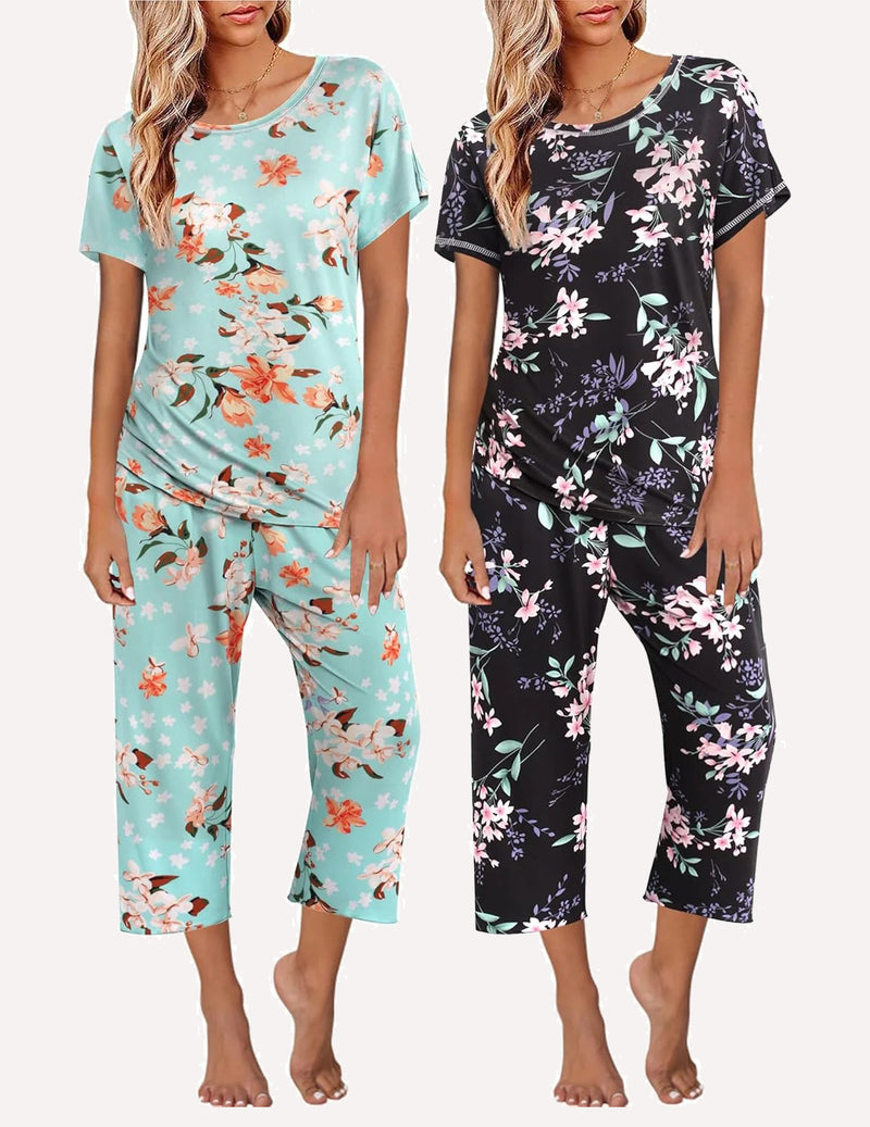 Ekouaer 2 Pack: Tops and Capri Pants Pjs Print Pajama Sets