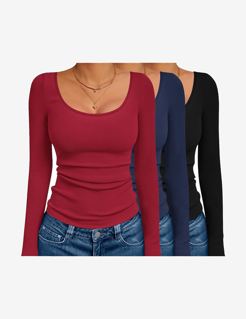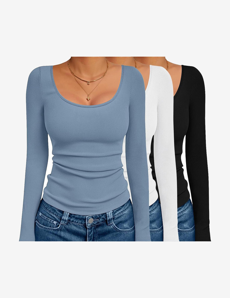 • Design: Basic scoop neck long sleeve tops, ribbed knit, slim fits, solid color, perfect for spring, fall and winter.