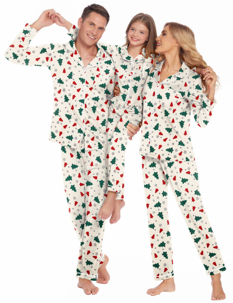 BUTTON-FRONT DESIGN - Classic Matching Family Xmas PJs come in the popular DRESS SHIRT STYLE, offering comfort and convenience with a long-sleeve top, notched collar and CHEST POCKET that gives him the LOOK AND FEEL OF TRADITIONAL PJS ; Full-length pants FIT PERFECTLY with a drawstring ELASTIC WAIST,keeping you comfy without being too tight.