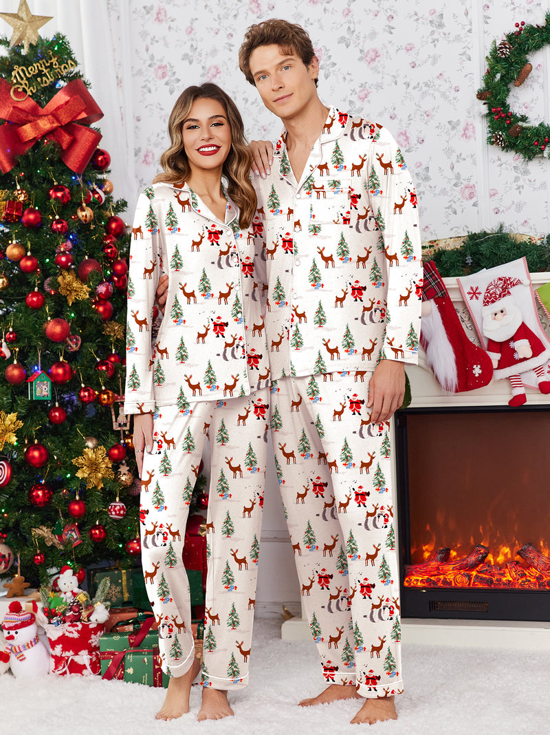 BUTTON-FRONT DESIGN - Classic Matching Family Xmas PJs come in the popular DRESS SHIRT STYLE, offering comfort and convenience with a long-sleeve top, notched collar and CHEST POCKET that gives him the LOOK AND FEEL OF TRADITIONAL PJS ; Full-length pants FIT PERFECTLY with a drawstring ELASTIC WAIST,keeping you comfy without being too tight.