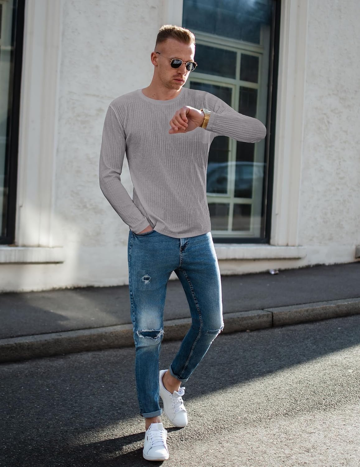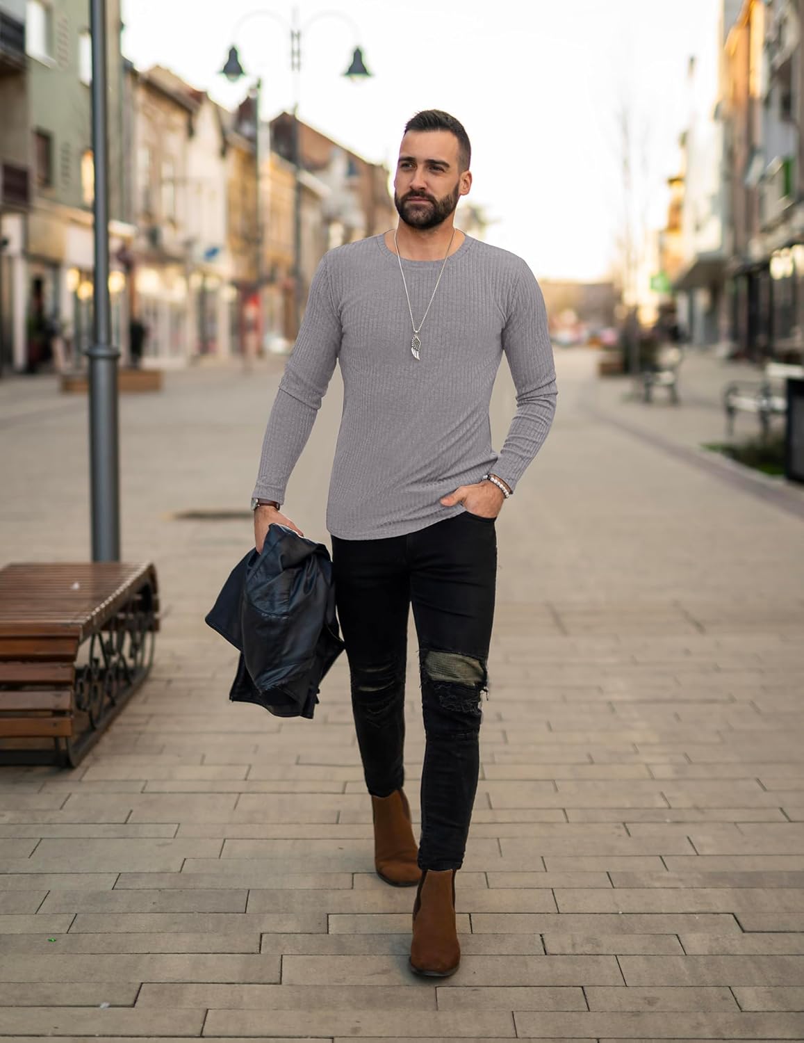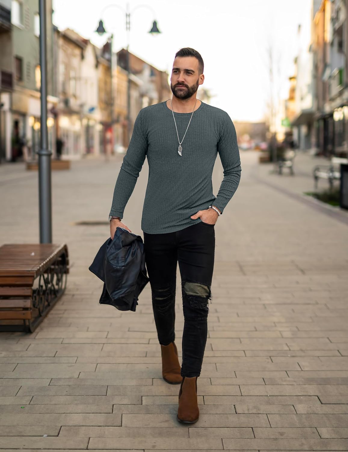 • Classic round neck design, Stretchy and skin-friendly material, Ekouaer Premium Ribbed Men's Thermal Shirts make you feel comfortable during spring, autumn, and winter. What's more, the sweater's slim-fit design will make your muscles more attractive.