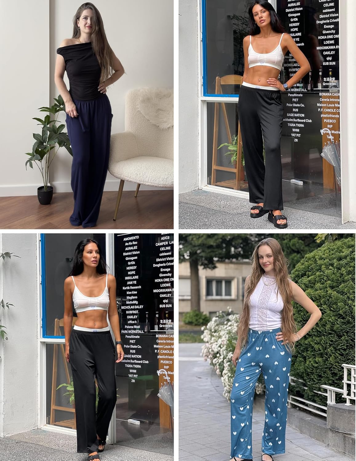 Design: These soft women's pajama bottoms feature an elastic waistband, wide leg, straight leg and high waist to fit any leg shape.
