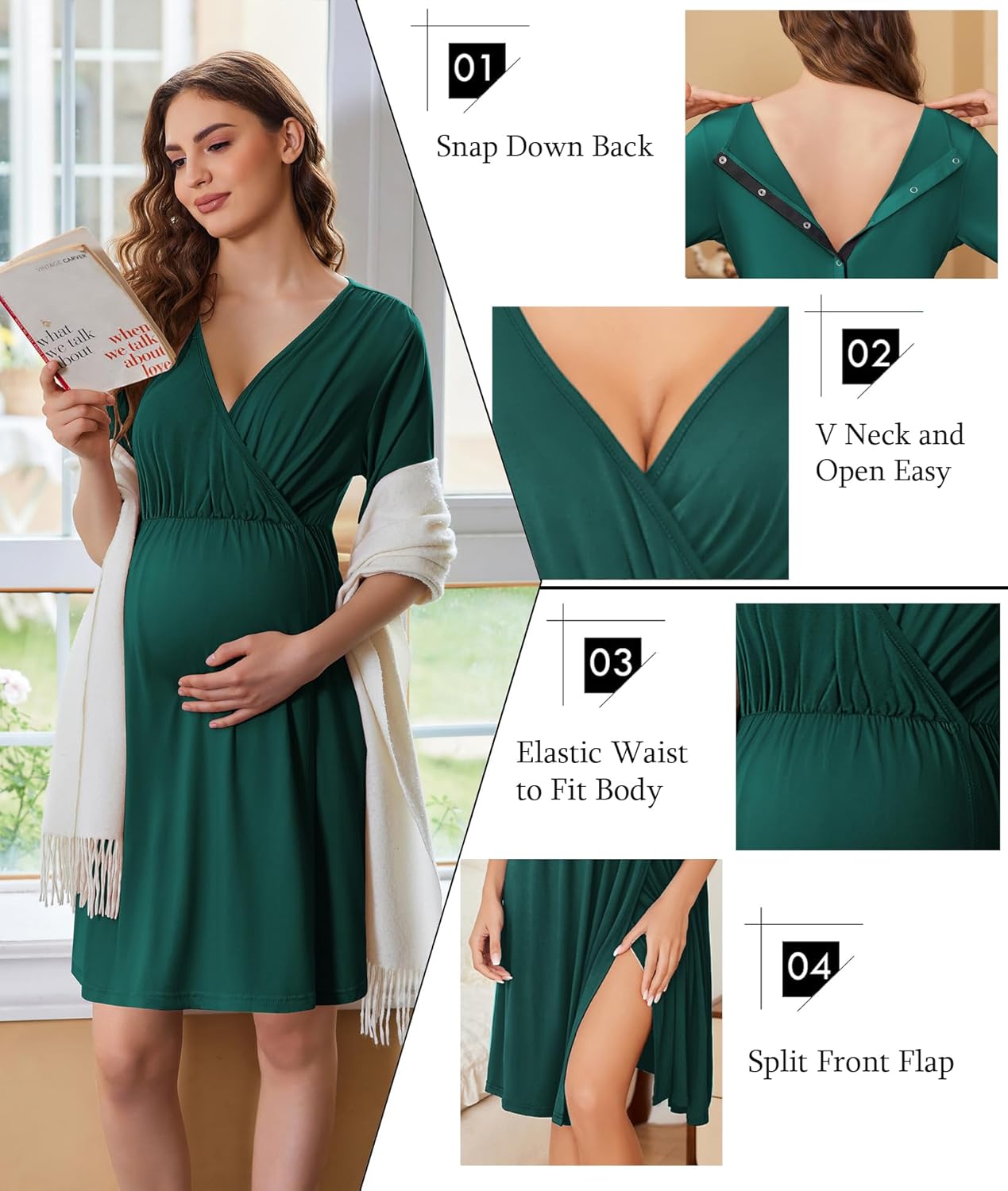 • Labor and Delivery Gown for Hospital: Skin-friendly and comfortable material, suitable for mothers with increased skin sensitivity during pregnancy, and the ultra-stretchy fabric is ideal for skin contact. Short sleeve birthing gown can thin enough to keep you cool in the summer and warm in the winter.
