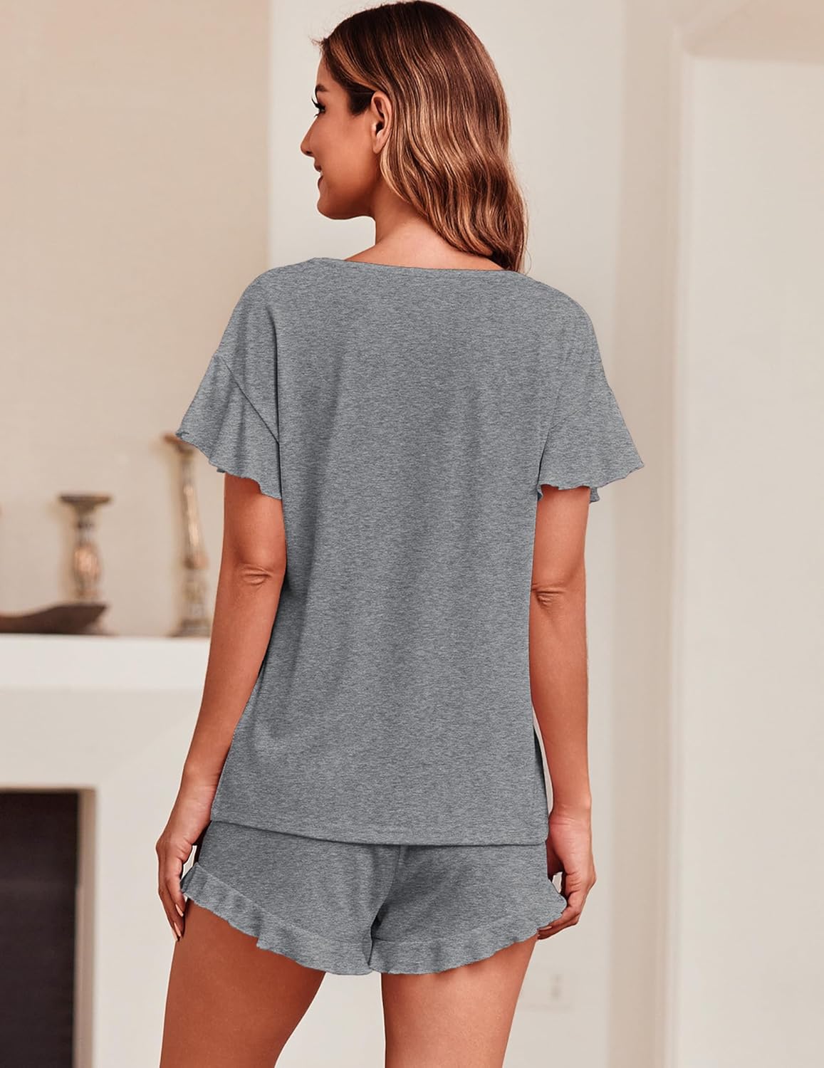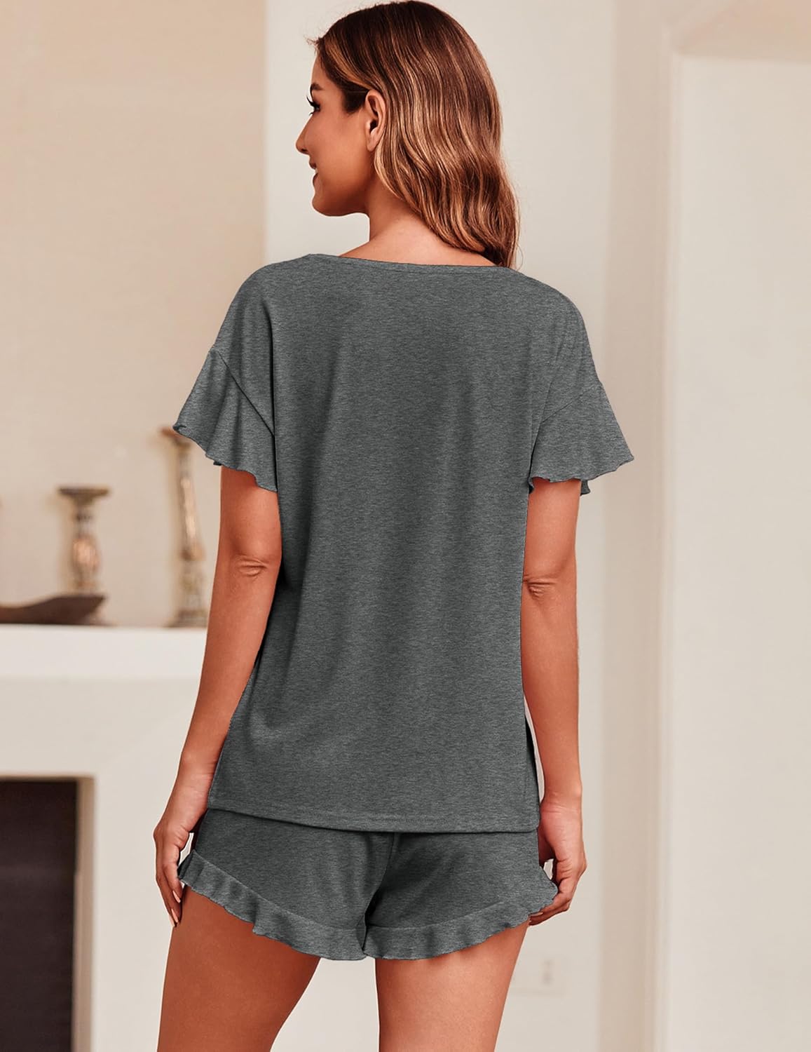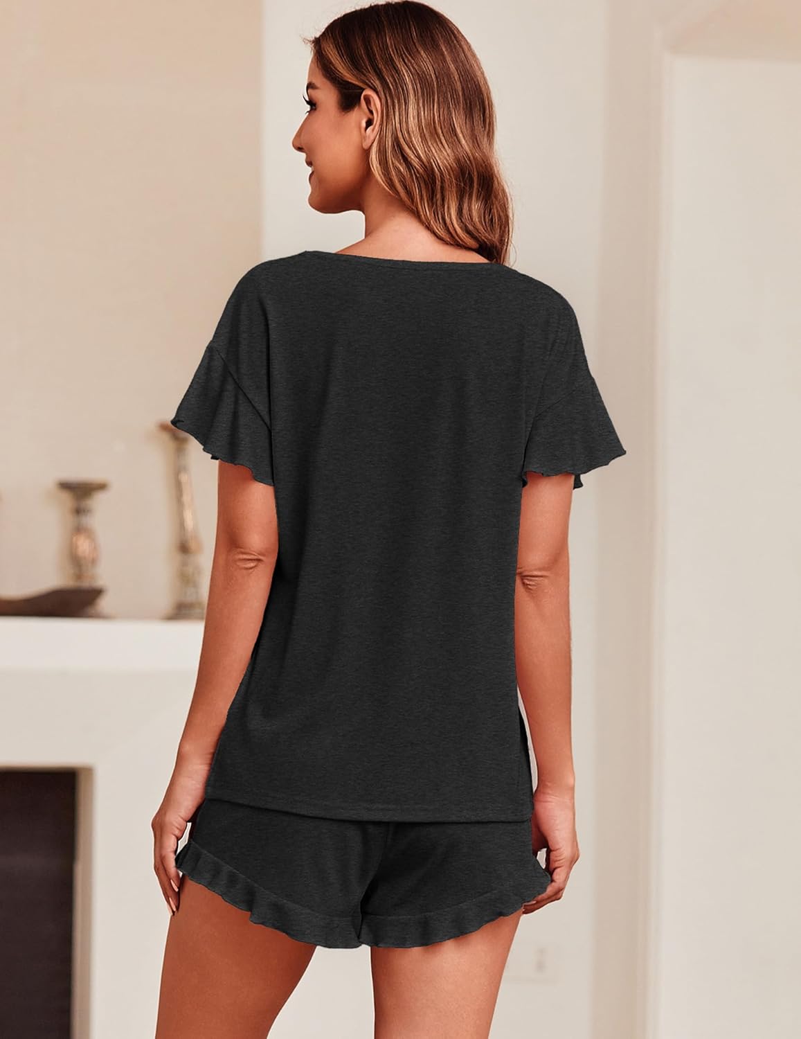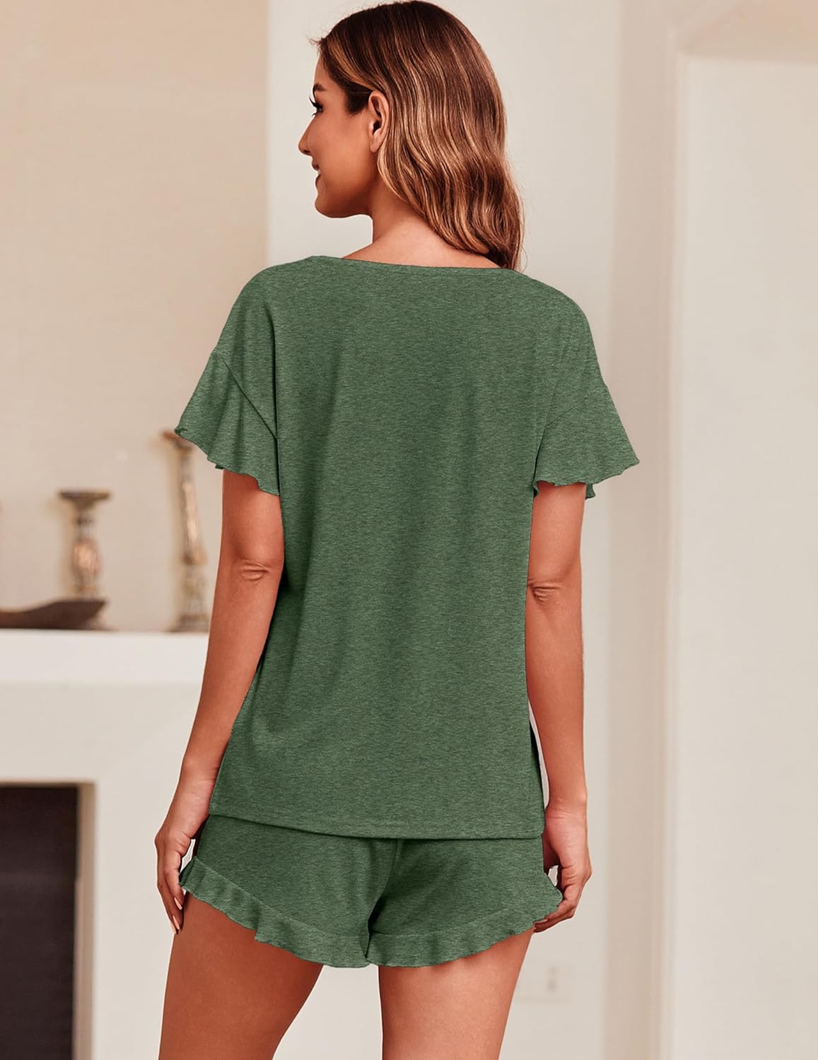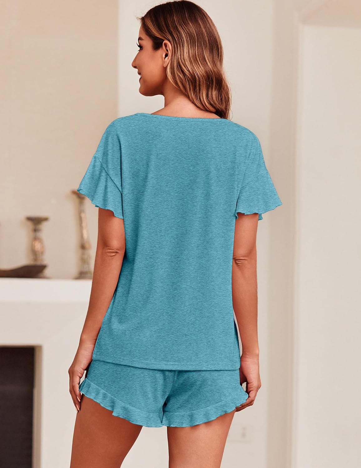• Soft Pajama Feature: This Pjs with O neck Ruffle hem short the fabric is comfortable, soft, and textured. This Pj shorts with drawstring waistband can easily adjust waist circumference, suitable for every woman.