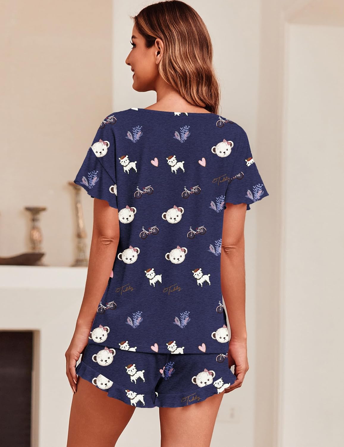 • Super soft fabric: The short pajama set is made of 76% polyester fiber, 5% spandex and 19% viscose fiber, Softer than ordinary fabrics, skin-friendly, unique fabrics. providing a more comfortable feel than other fabrics and offering you a better experience