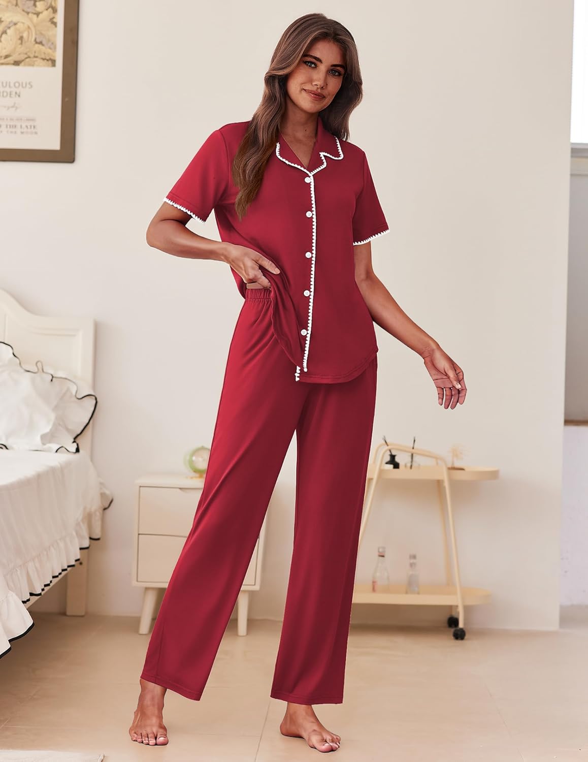 Ekouaer Pajama Sets Button Down 2 Piece Pants Pjs Set