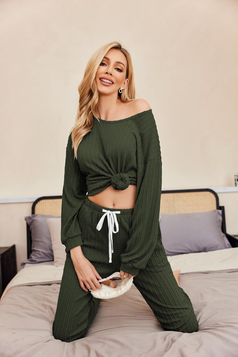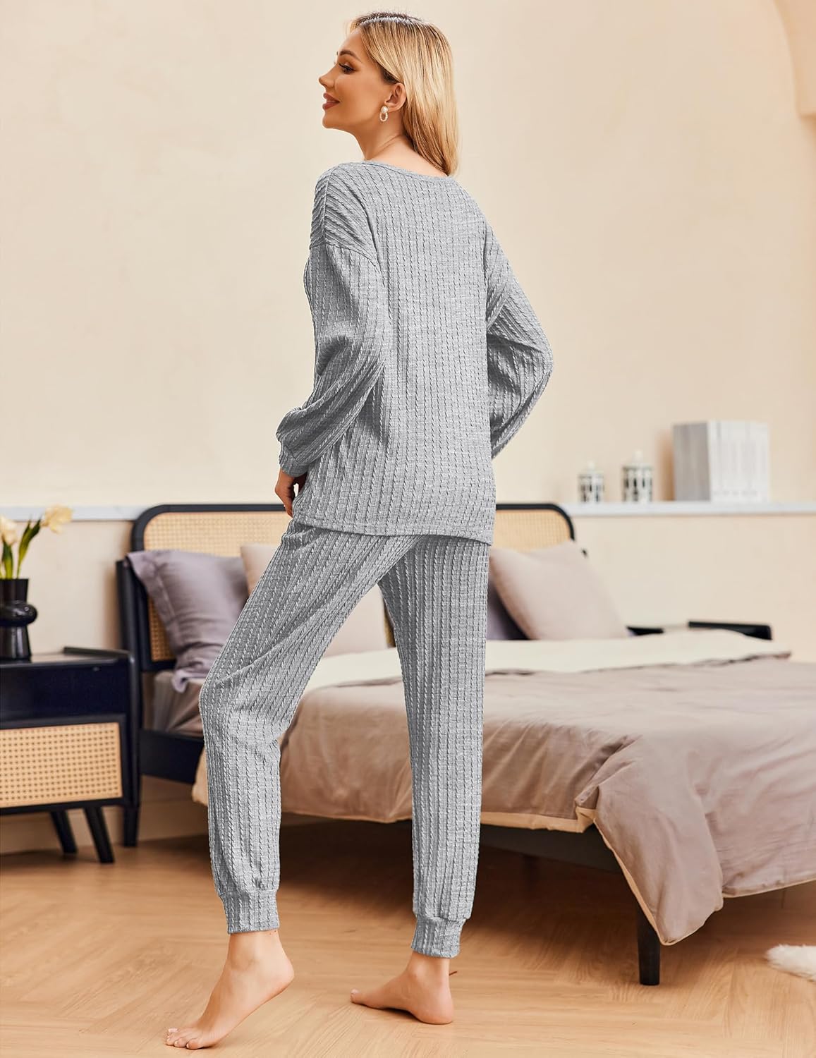 Material: Pajama sets for women is made of 96%Polyester4%Spandex.Ribbed Knit fabric, which is so soft, cozy and lightweight Ekouaer womens lounge sets