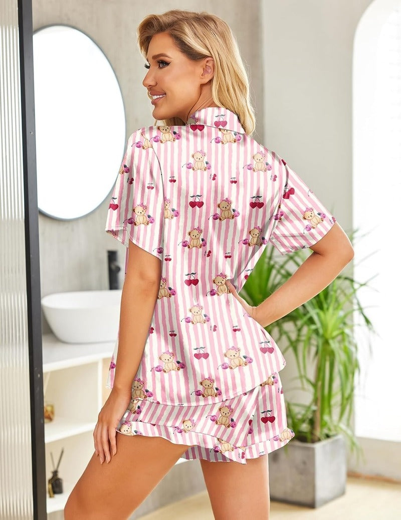 Teddy Satin Pajamas Set 2 Piece Silk Pjs Set