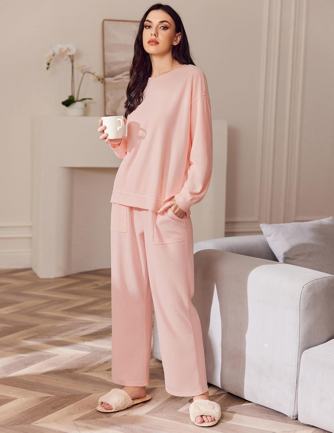 Ribbed Knit Pajama Sets 2 Piece Long Sleeve Pjs Soft Outfits