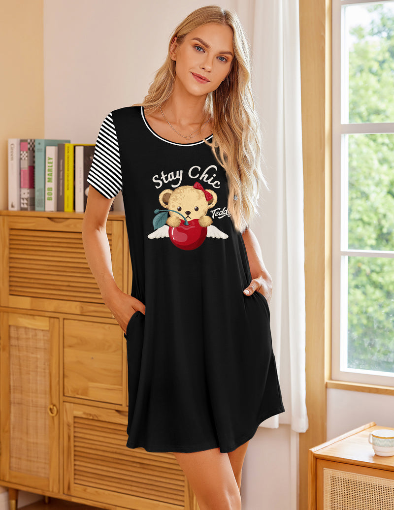 Teddy Short Sleeve Night Dress Printed Sleepwear
