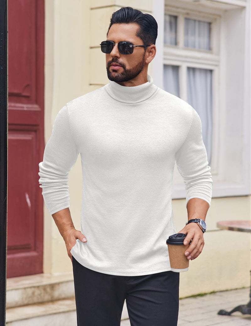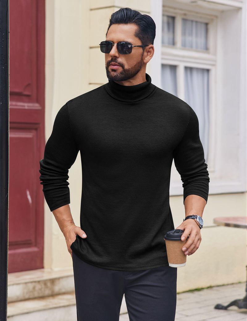 Mens Turtleneck Shirts Ribbed Lightweight Sweater