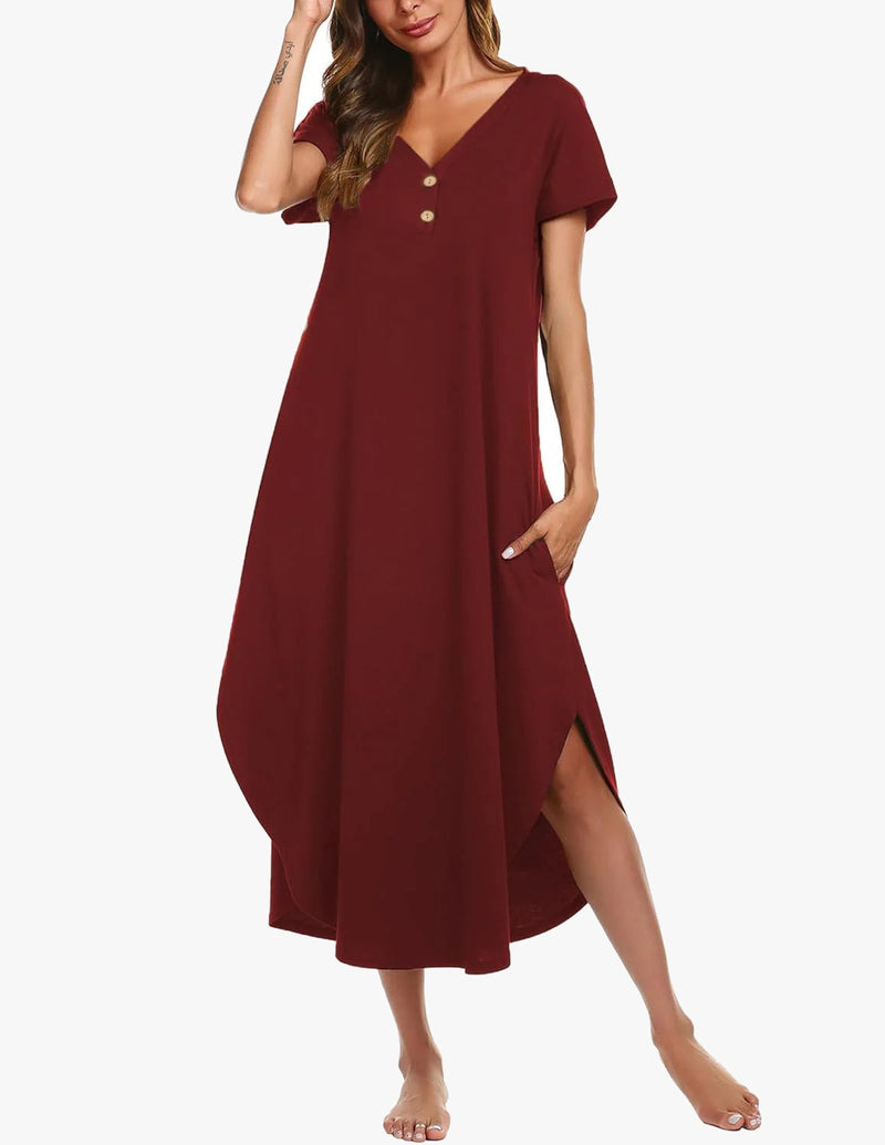 Long Sleeve Long Henley Full Length Sleep Dress
