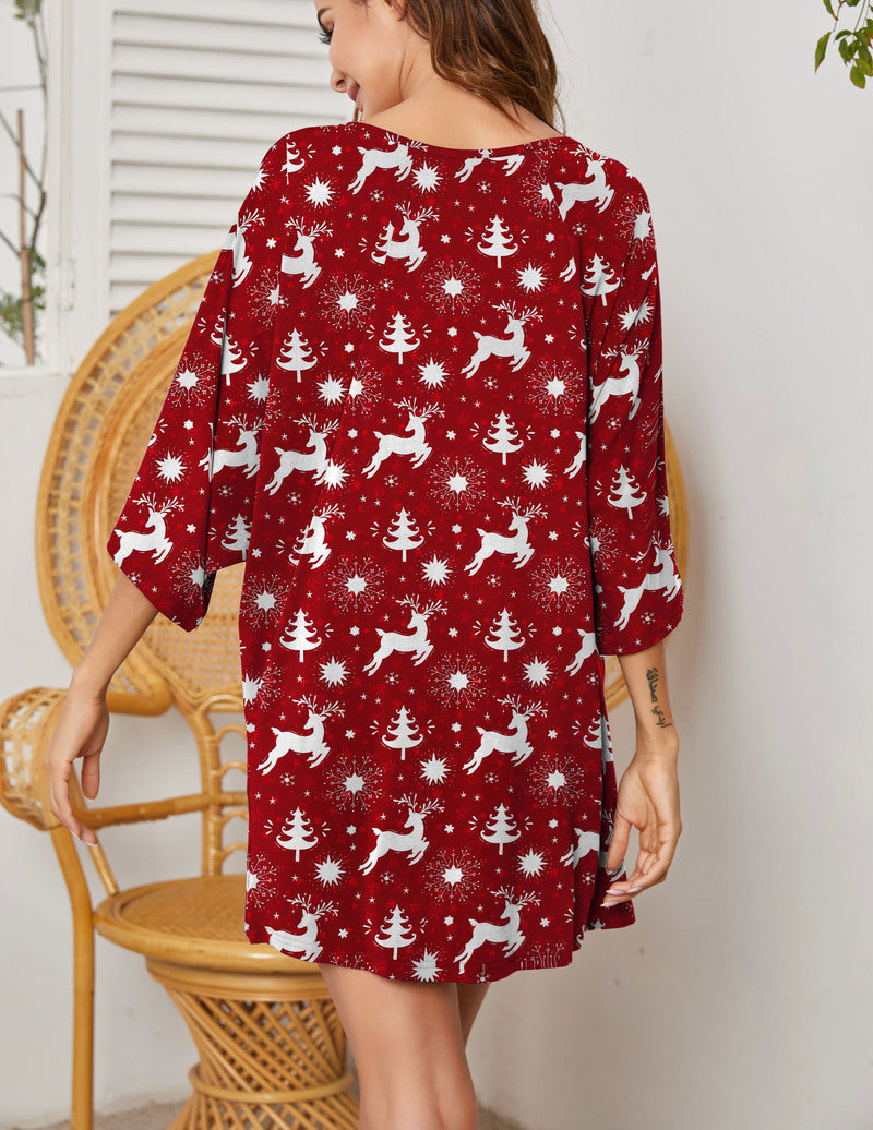 Deep V Neck Batwing Nightshirt Oversized Sleepwear