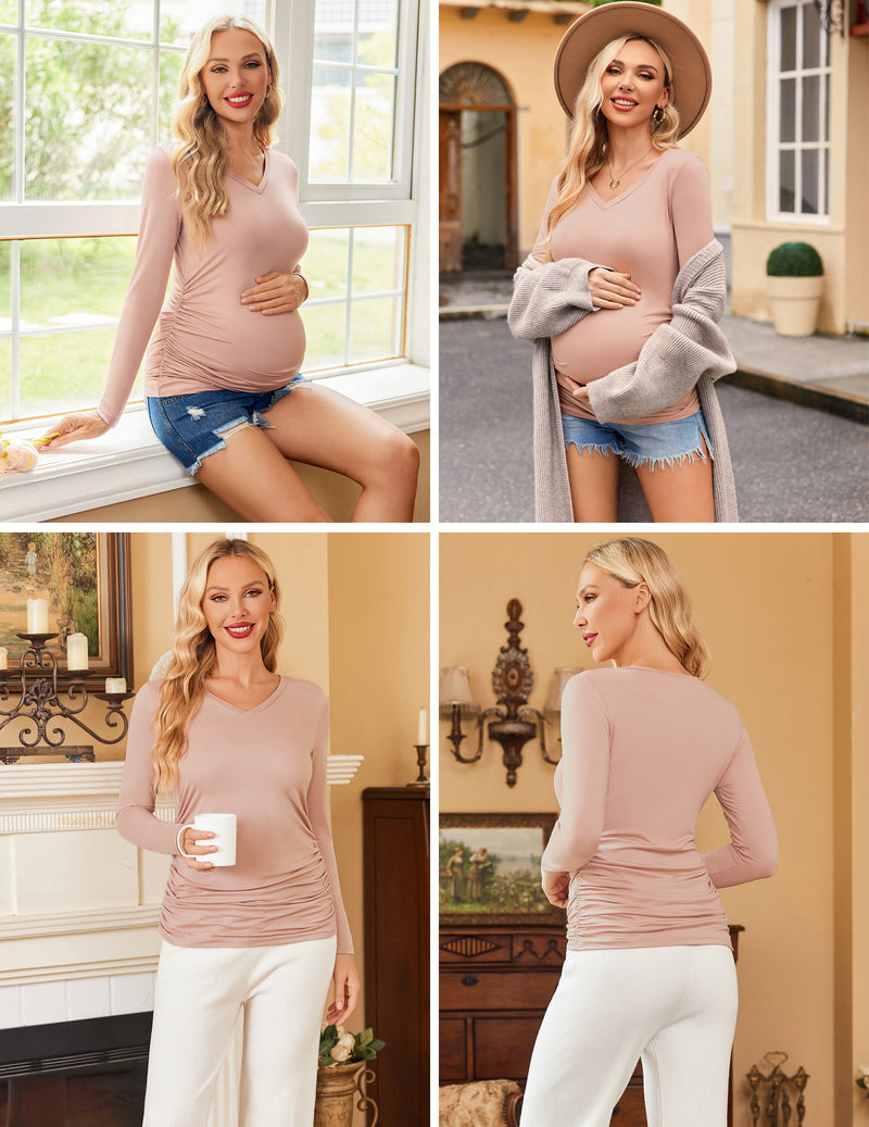 Features: Side Ruched design provides enough space for the growing belly at every stage. Easy to match with jeans,leggings or shorts for daily wear.