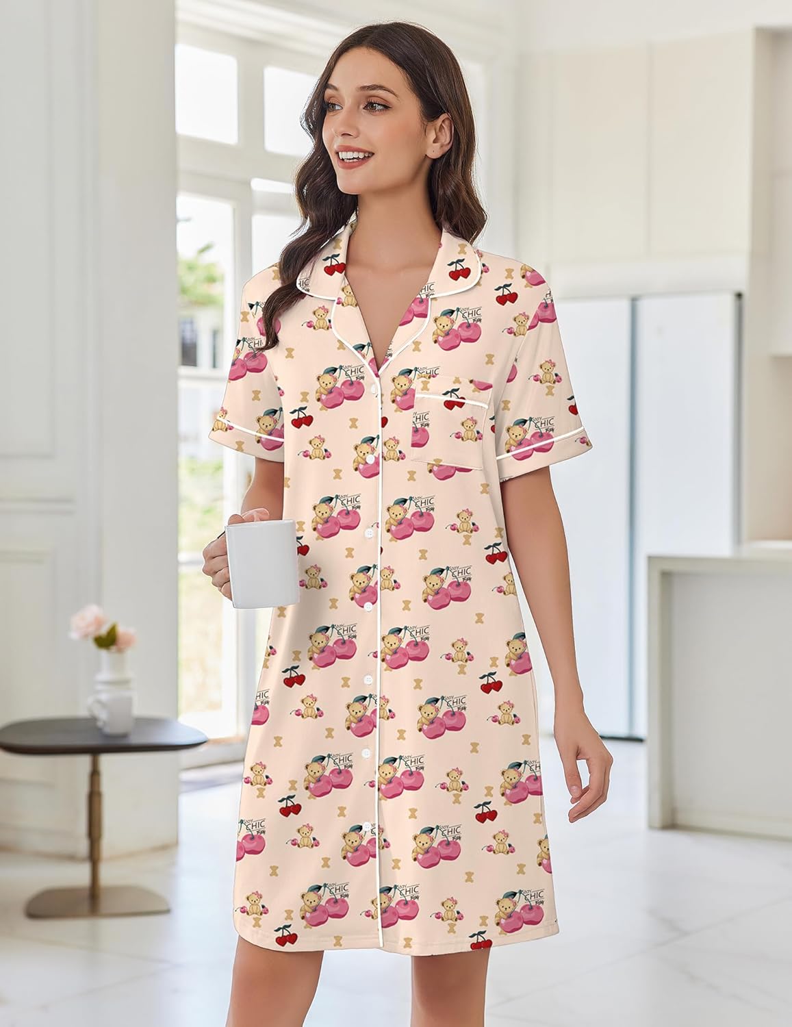 Button Down Sleep Shirts Short Sleeve Nightshirts