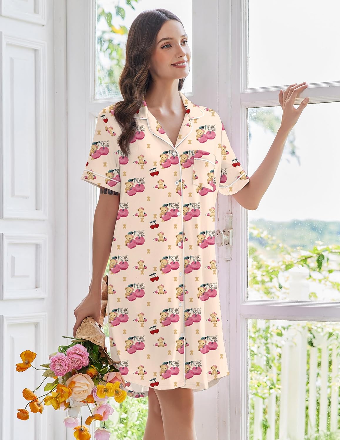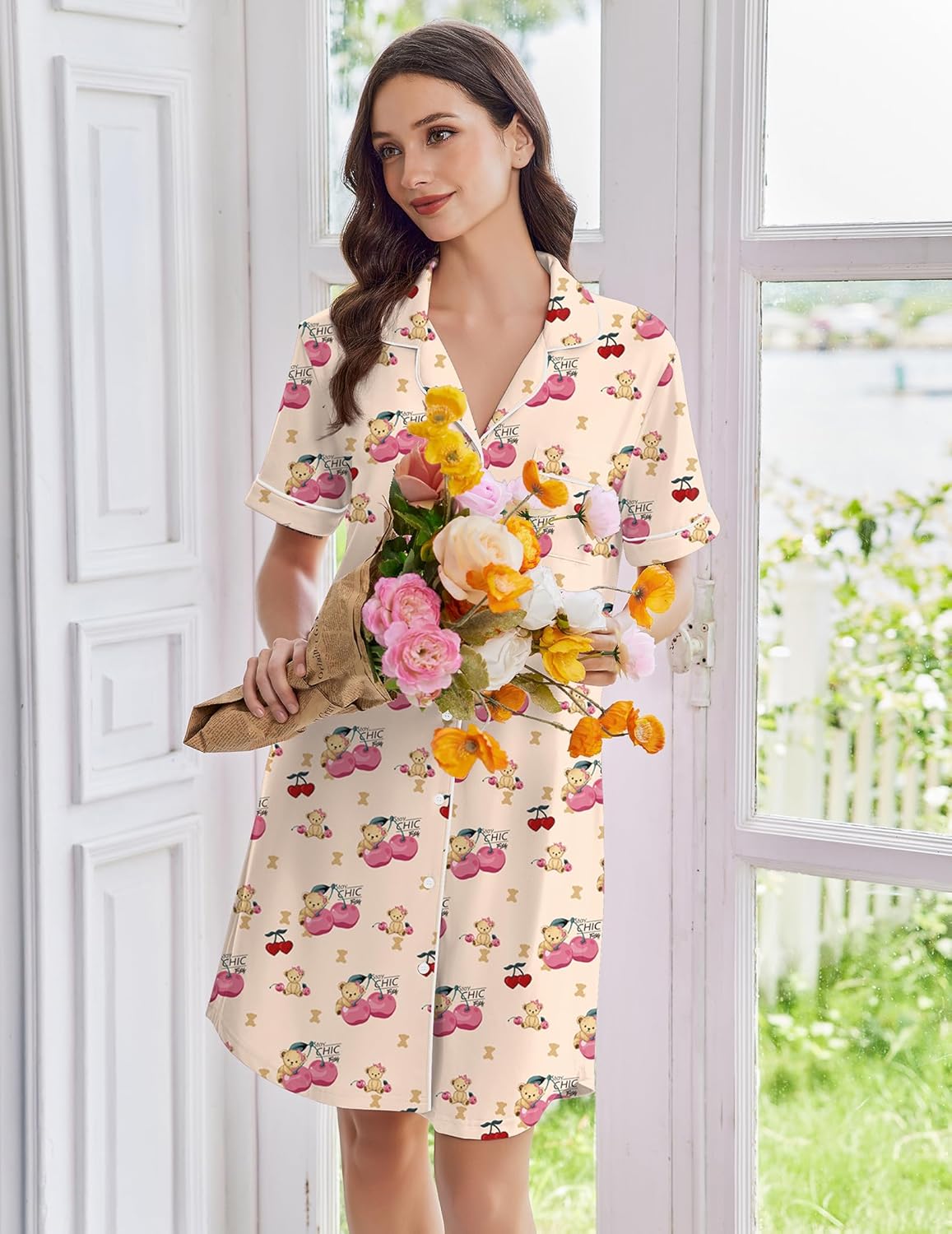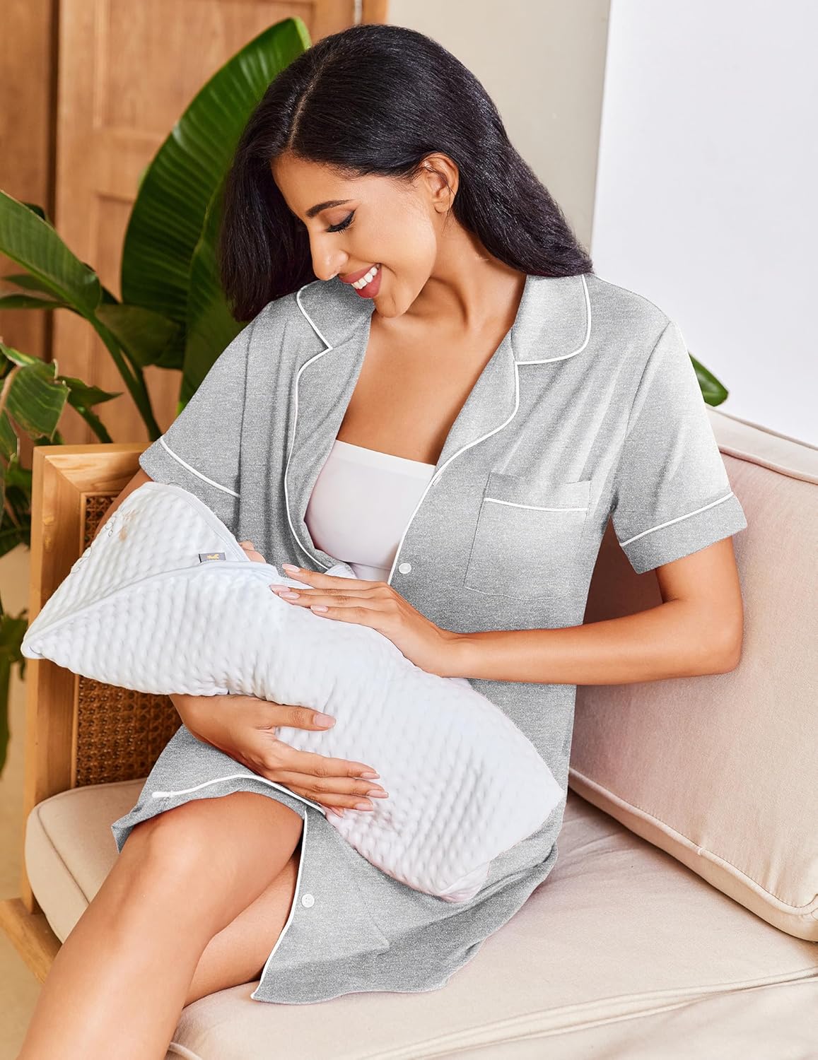 • Nursing Nightgown: The button-down nightshirt is perfect for breastfeeding. You can use this pajama dress as a nursing nightgown and wear a nursing bra underneath, which is very useful and convenient