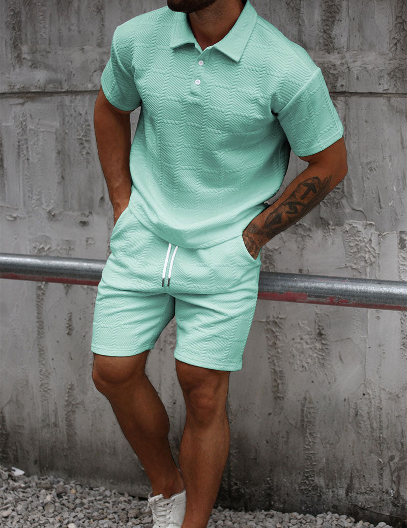 Men's Textured Polo Shirt & Shorts Set Knit Jacquard 2 Piece Outfit