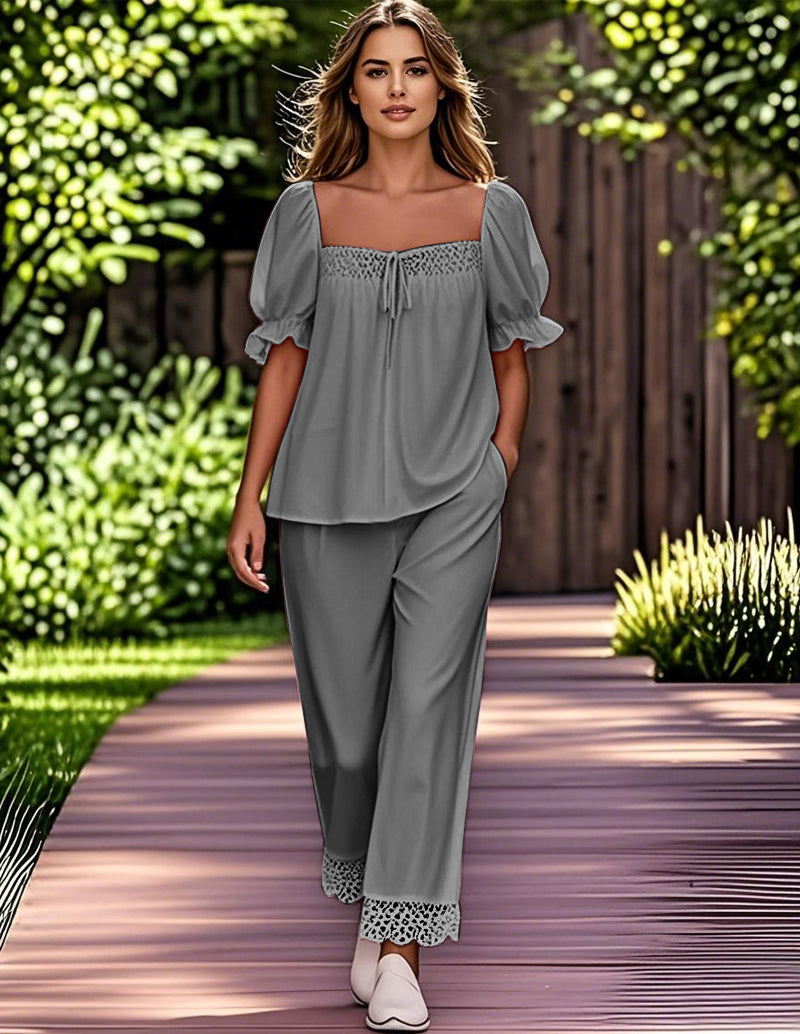 Cozy Lace Patchwork Pajama Set