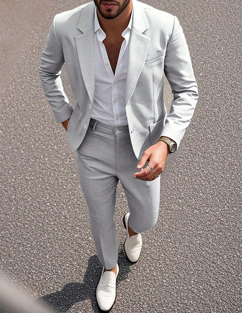 Men's Slim Fit 2-Piece Suit Blazer & Trousers Formal Suit Set