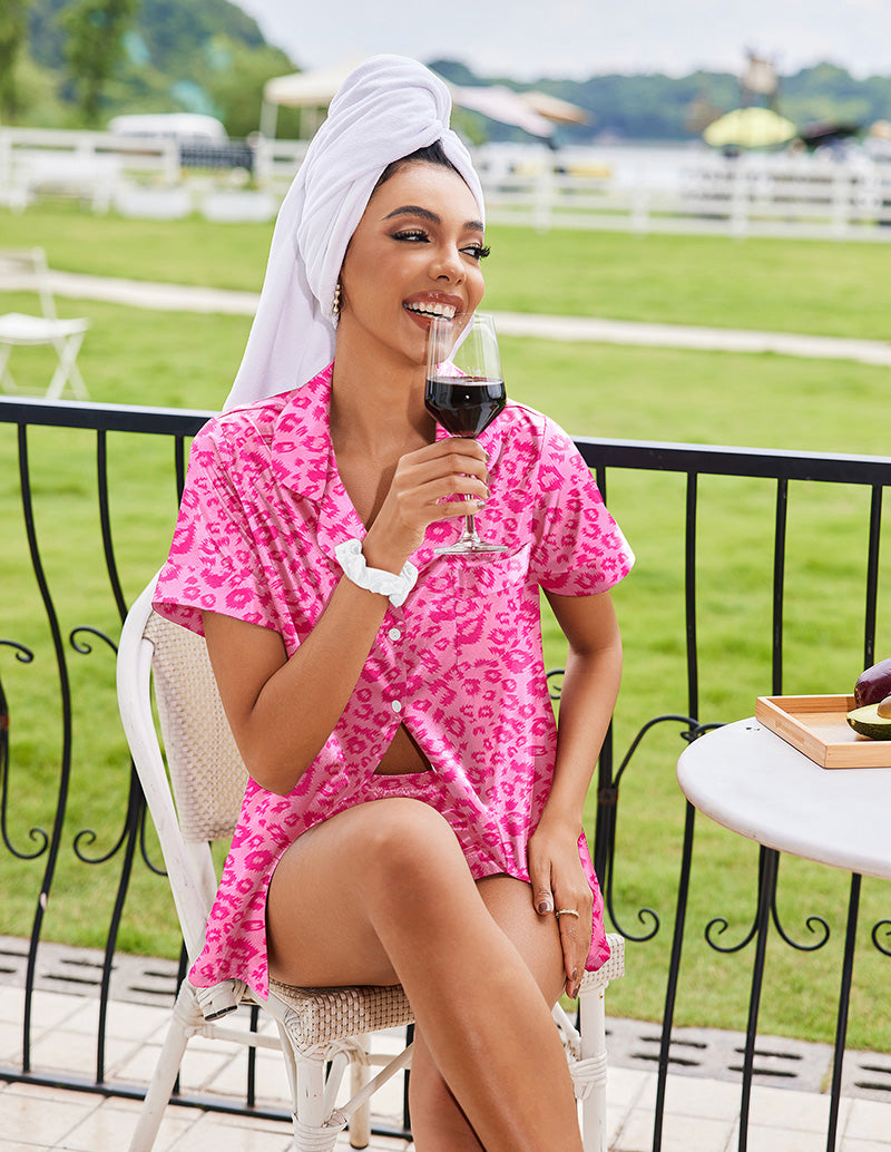 Ekouaer Ruched V-Neck Pajamas Set (US Only)